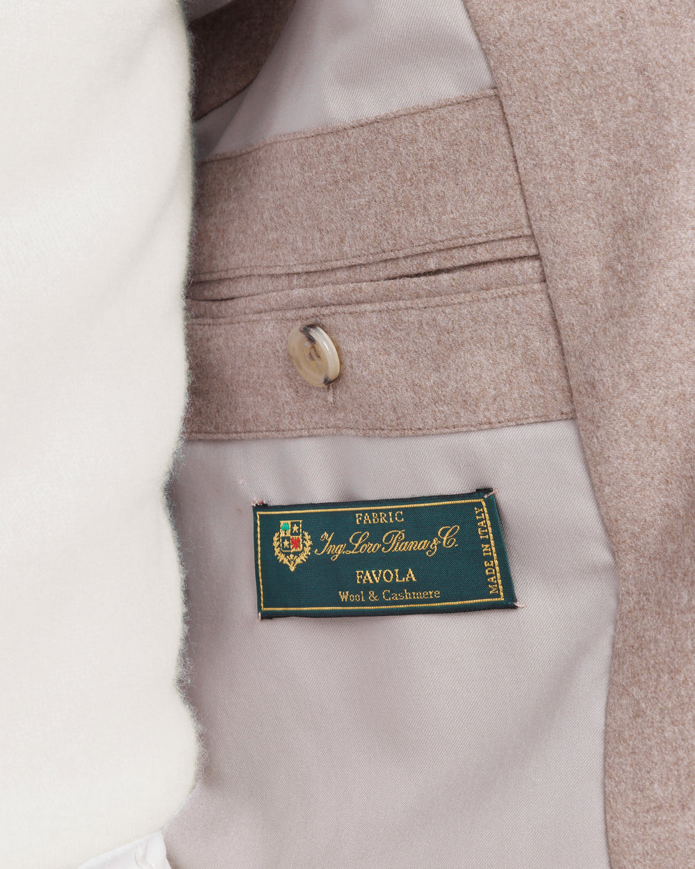 De buitenstof in wol-kasjmier “Favola” van de weverij Loro Piana combineert zachtheid, lichtheid en natuurlijke bescherming tegen vocht, terwijl de binnenkant in pure Super 120’s wol Vitale Barberis Canonico Sunny Season ademend vermogen en thermisch comfort garandeert. Het resultaat is een ultralicht maar warm kledingstuk, ontworpen met een klassiek aangesloten pasvorm die het mogelijk maakt het solo of onder een ander kledingstuk te dragen zonder overtollig volume.