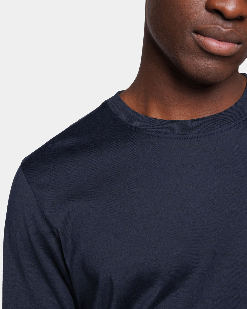 Het is een waardevolle toevoeging aan de hedendaagse garderobe. Dit kledingstuk is het resultaat van Filatori's toewijding aan excellentie en kenmerkt zich door een hoge mate van zorg voor afwerking en details. De zichtbare naden onder de hals en op de schoudernaden geven een extra vleugje maatwerk aan het kledingstuk. De halslijn heeft een 1,8 cm hoge ribbelboord in 2/115.000 60% zijde - 40% biologisch katoen, een detail dat het kledingstuk een uitzonderlijke glans geeft.